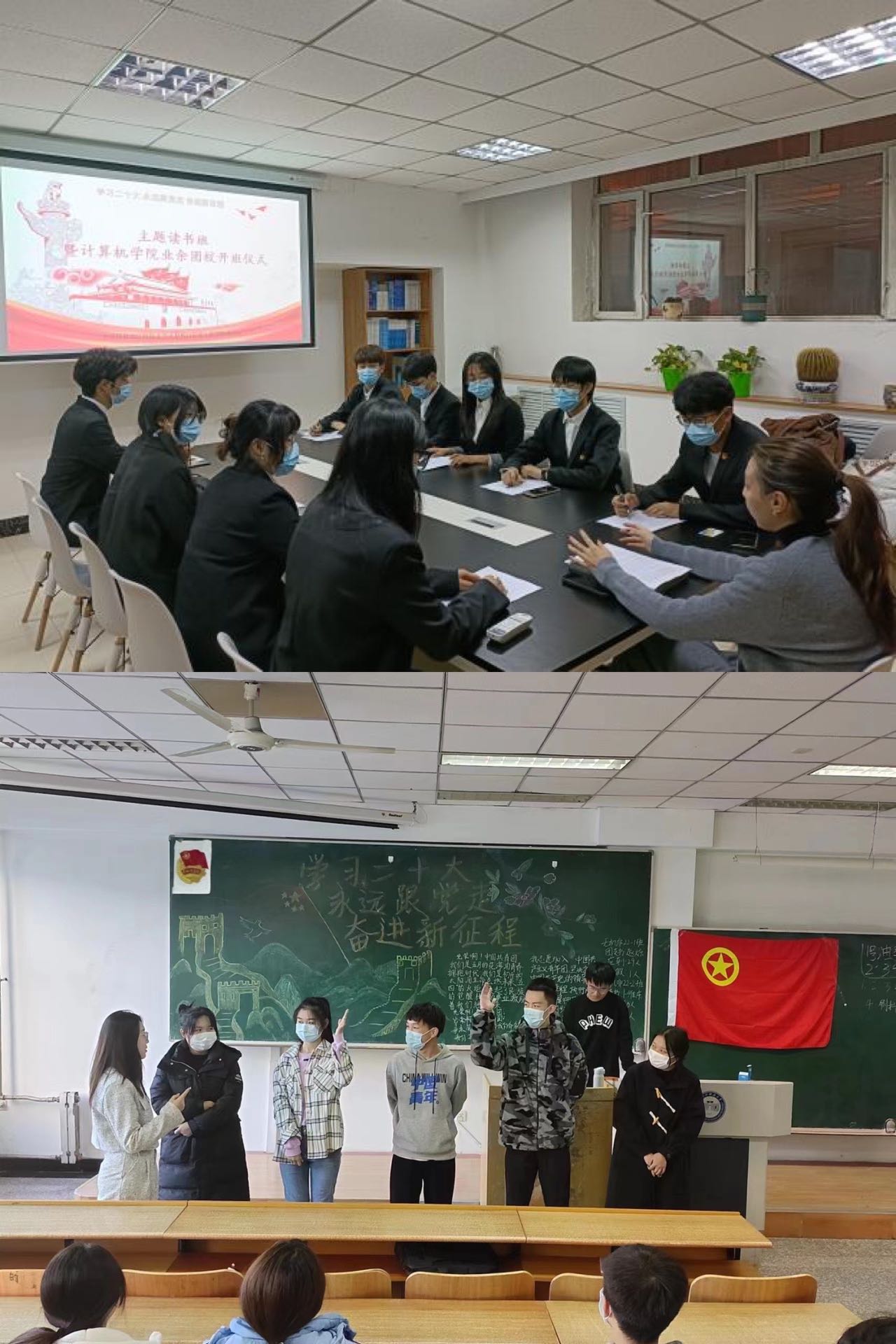 坚定理想信念,筑牢信仰之基。各级团组织科学谋划,结合青年学生特点,找准结合点、切入点、着力点,进一步激发学生爱党爱国、团结奋斗的强烈情感。管理学院组织集中开展了学习二十大精神宣讲报告会,全面学习大会成果,深入领会核心要义,准确把握实践要求;材料学院、理学院组织团员青年重温入团誓词,进一步坚定学生理想信念,引导团员青年切实履行共青团员的政治责任;电信学院召开党的二十大精神分享交流会,进一步增强学生坚定不移听党话、跟党走的决心;计算机学院组织全体兼职团干部开展“学习二十大、永远跟党走、奋进新征程”读书班,形成了团干部“带头学”、基层团支部“对标学”、青年学生“互促学”的良好学习氛围。