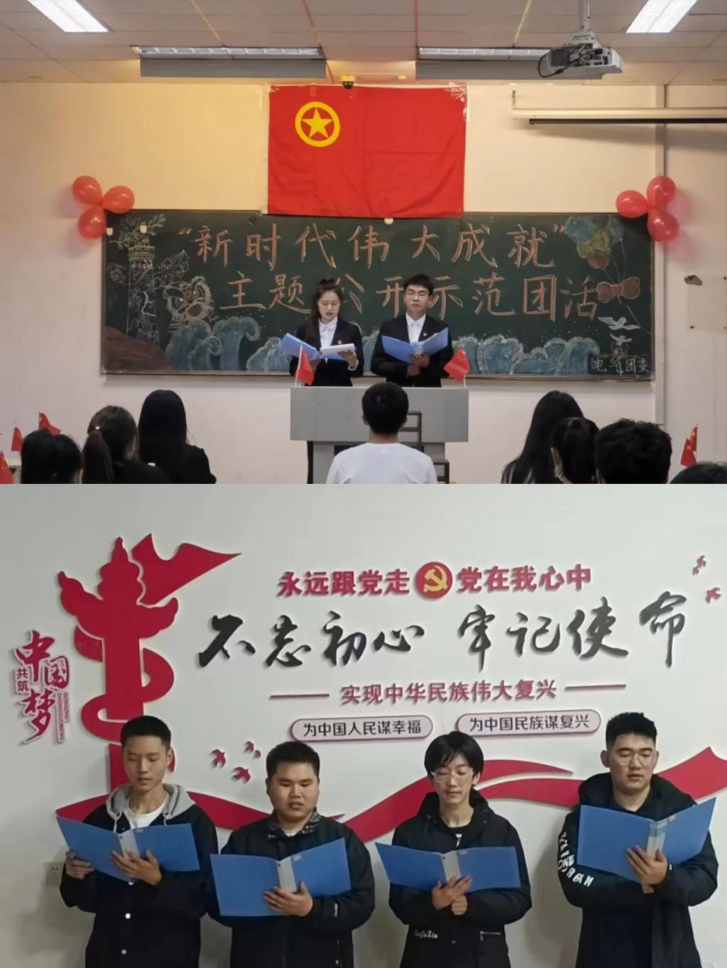 创新活动形式,把稳思想之舵。各级团组织充分发挥组织优势、阵地优势,不断创新团日活动形式,提升基层团组织活力。马克思主义学院、建工学院开展党的二十大报告知识竞赛,引领青年学生不断从党的重大成就和历史经验中增长智慧、增强信心;电气学院开展 “新时代伟大成就”主题公开示范团活、“学习二十大、启航新征程”主题征文比赛,围绕二十大精神,引导青年坚守初心、勇担使命,书写好新时代青年的历史答卷;机械学院开展“献礼二十大、奏响新乐章”红歌大赛,重温党的光辉岁月,歌颂党的伟大成就,唱响新时代华章;人文学院开展吟诵中华经典,镌刻红色烙印活动,诵读党史中的经典著作,追寻红色的足迹,传承党的光荣传统和优良作风。