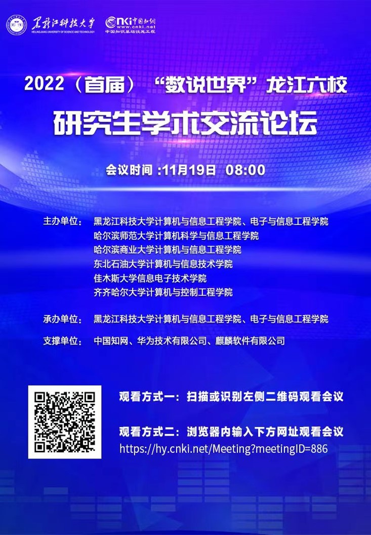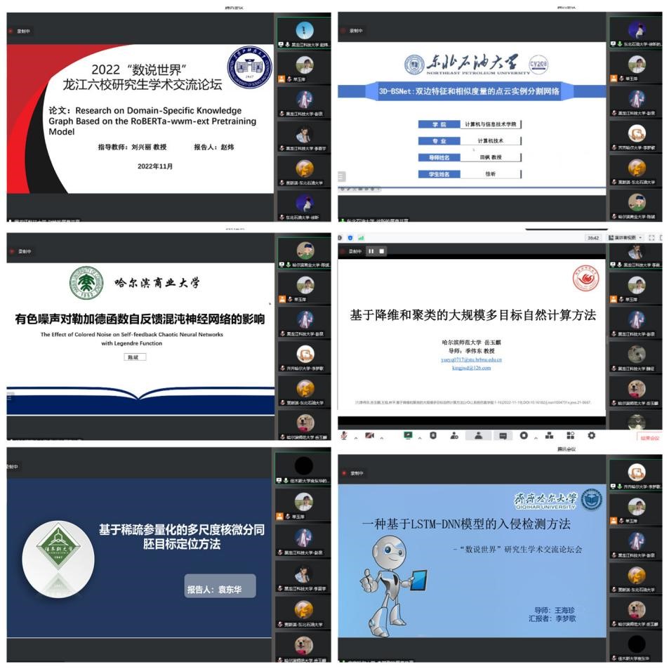 为响应省委、省政府加快“数字龙江”建设,推进黑龙江省数字人才培引的号召,搭建一个面向研究生的集学术观点、学术思想等汇聚交流的平台,11月19日,华体(中国)计算机与信息工程学院、电子与信息工程学院联合东北石油大学、哈尔滨师范大学、佳木斯大学、哈尔滨商业大学、齐齐哈尔大学共同举办了2022首届“数说世界”龙江六校研究生学术交流论坛。计算机与信息工程学院院长赵金宪、副院长刘兴丽,电子与信息工程学院院长杨庆江、副院长刘付刚,以及其他五校的相关学院领导和研究生导师参加会议,华体(中国)研究生学院副院长于凤云应邀参加了本次会议。论坛由刘兴丽主持,交流论坛采取线上直播方式进行。