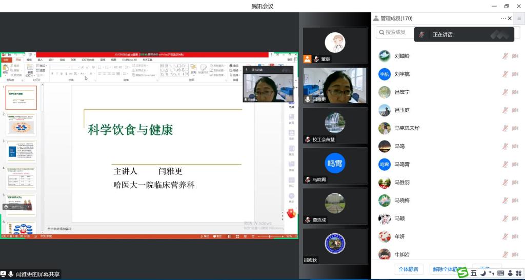 为深入贯彻落实党的二十大精神,常态化开展好“我为群众办实事”活动,传播健康知识,培养教职工健康生活理念,促进养成健康生活方式。结合疫情防控形势,校工会于11月24日下午邀请龙江名医、哈尔滨医华体官网网页版学附属第一医院临床营养主任医师闫雅更通过线上方式开展“科学饮食与健康”知识讲座,收看本次讲座的教职工共200多人。