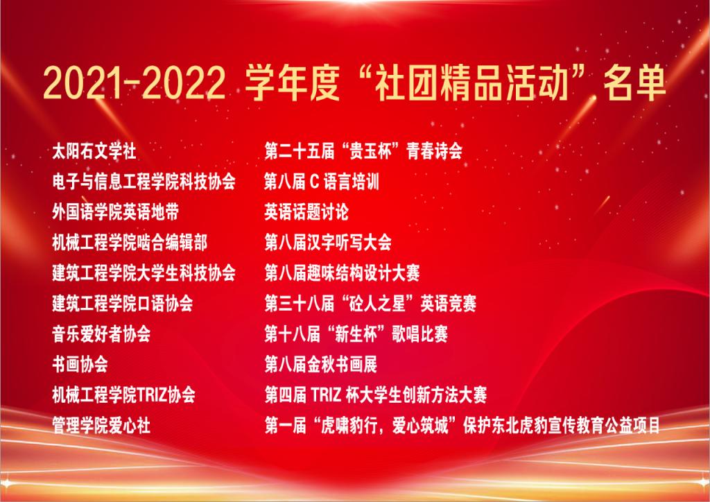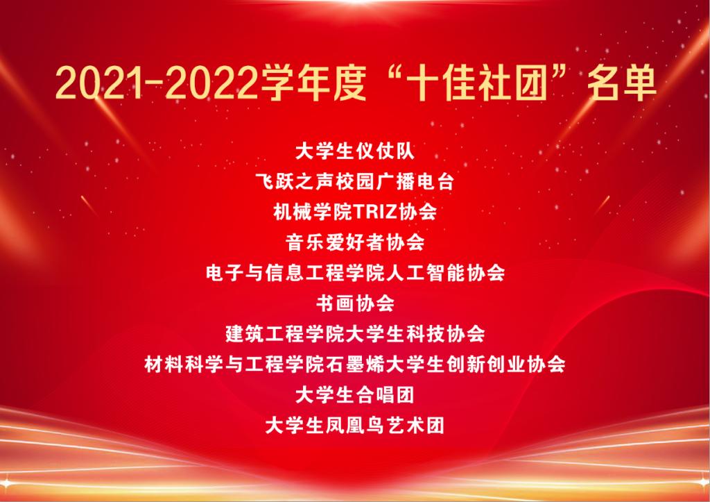 为进一步促进华体(中国)学生社团蓬勃发展,大力实施精品社团建设工程,充分发挥学生社团在校园文化生活和第二课堂中的积极作用,校团委近日在全校学生社团中开展了2022年度学生社团先进集体和先进个人评选活动。
