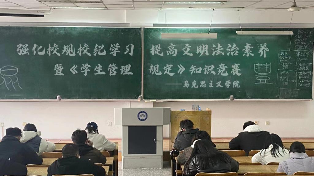 强化文明法纪教育筑牢思想道德防线。通过学院公众号平台“黑华体官网网页版马院思政之音”进行普法活动,推送《民法典》《网络安全法》相关内容,教育引导我院青年学生知法、懂法、守法,争做遵纪守法、知行合一的大学生;开展“强化校规校纪学习提高文明法制素养”暨《华体官网网页版学生管理规定》知识竞赛,加强对学生的遵纪守法教育、文明礼仪教育、行为规范教育和养成教育,以竞赛促学习,以竞赛促行动,切实增强学生“规矩”意识和纪律观念。