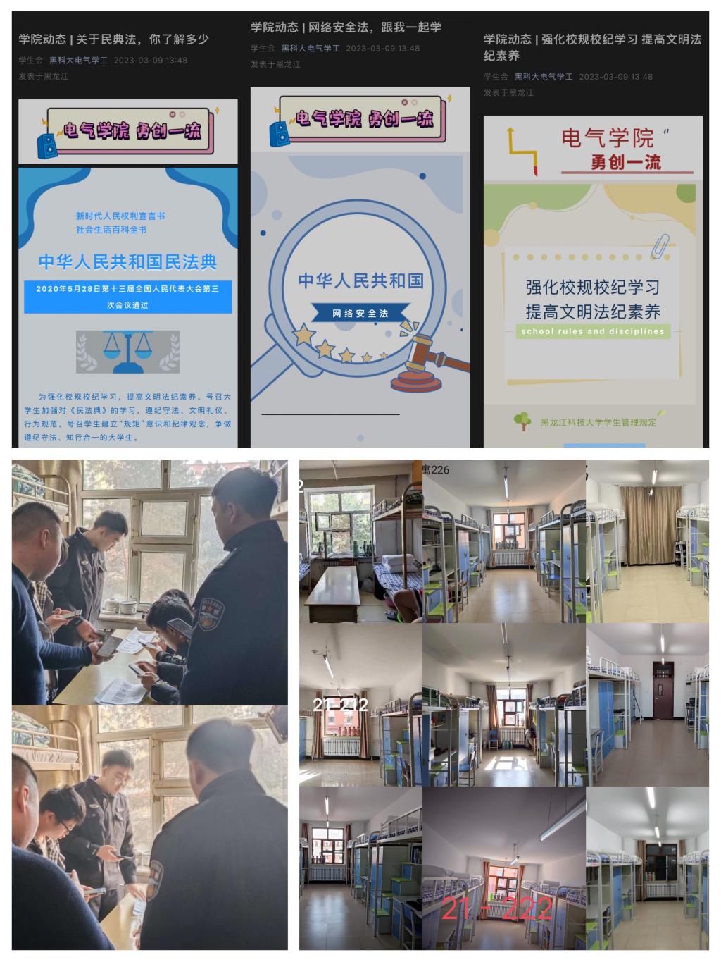 严明法规校纪“警戒线”。电气学院开展民法典普及宣传,增强法律学习;开展网络安全法宣传教育,强化法律意识;开展强化校规校纪学习主题班会,针对《华体官网网页版学生管理规定》进行学习,增强学生规矩意识和纪律观念;邀请松浦派出所民警共同开展反诈宣传,加强学生自我保护意识。