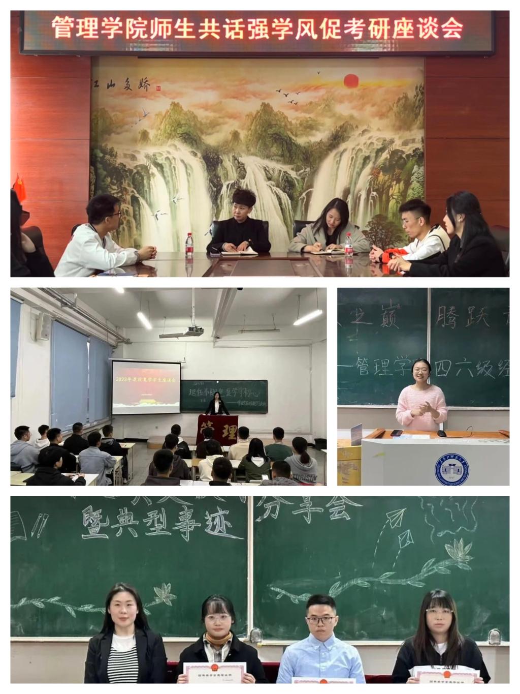 以榜样修身,为自身素养“立标”。学院开展“勇攀四六之巅,腾跃青春之路”英语四六级经验分享会,开展国家奖学金颁奖仪式暨典型事迹经验分享会,师生共话强学风促考研座谈会,举办“退伍不褪色,复学守初心”退役复学生座谈会,以榜样教育深化学风建设,激励管院学子有方向、有目标、更有动力,传承好、发扬好管院学子的优良学风。