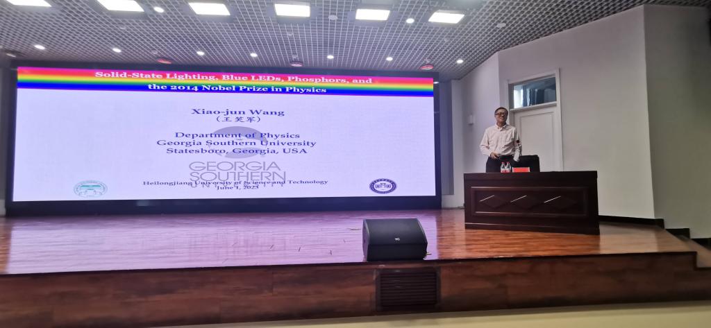 6月1日下午,理学院邀请美国南佐治亚大学终身教授,博士生导师,发光领域国际知名学者,华体(中国)特聘教授王笑军在朝阳楼0131会议室作科技讲座。学院领导班子成员,物理系全体教师和部分学生代表参加了学术讲座,讲座由副院长姜洪喜主持。