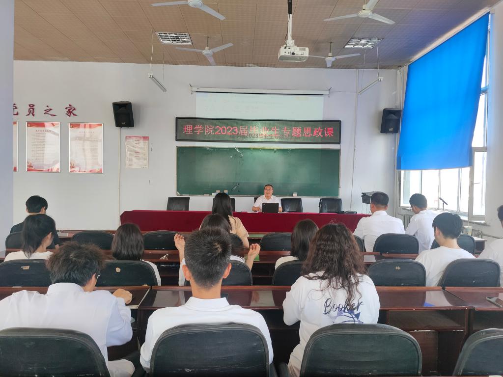 为了落实学校2023届毕业生文明离校主题教育活动要求,引导毕业生进一步坚定不移听党话、跟党走,把爱国情、强国情、报国情融入到毕业后的人生旅途中,按照学院毕业生离校工作要求,6月19日,学院在三楼会议室开展了2023届毕业生专题思政课。