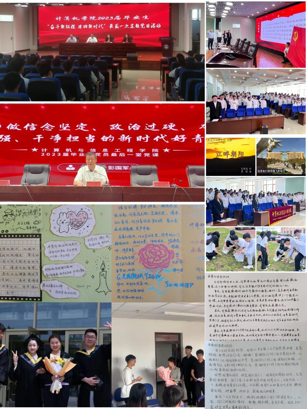 为深入学习贯彻习近平新时代中国特色社会主义思想,进一步学习贯彻党的二十大精神,加强毕业生的理想信念教育、爱国主义教育、爱校荣校教育,计算机学院开展“鲜衣怒马少年时 不负韶华行且知”欢送2023届毕业生主题教育系列活动。