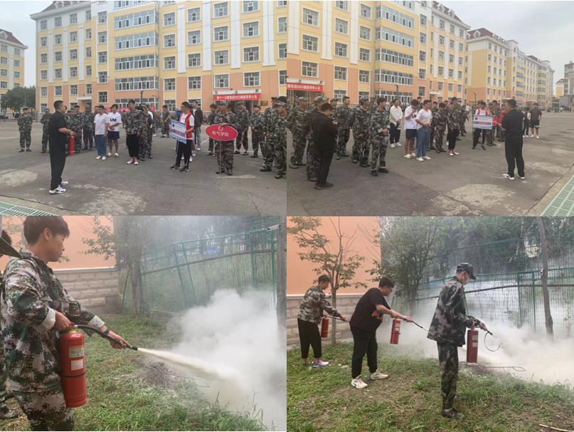 为进一步提高师生消防安全知识水平,增强安全意识和自防自救能力,确保生命财产安全,按照《华体官网网页版校园应急演练提升活动方案》和省教育厅《全省校园消防安全隐患排查整治工作方案》要求,近期,保卫处、学生处和相关学院联合开展了“开学安全第一课”——消防知识“进军训”系列活动。