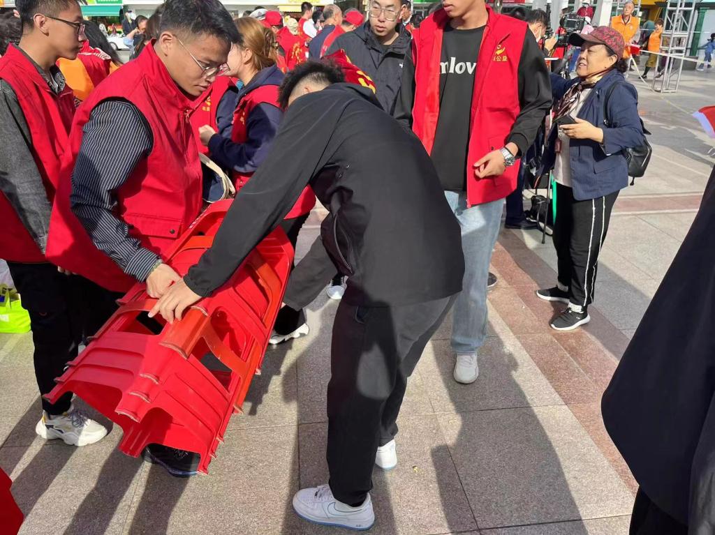 抵达活动现场后,志愿者在负责人带领下,分为三组,一组负责维持文艺演出会场秩序,二组负责帮助老人操作义诊手机端小程序,三组负责宣传普及健康饮食知识,志愿者们青春洋溢、热情高涨、耐心细致,成为现场一道靓丽的风景线,充分展现出青年学生的良好形象和精神风貌,也得到了现场参加义诊老人们的一致好评。志愿者们在即将结束之际,向老年们表达了自己的祝福,祝愿他们:“晚年幸福,平平安安,夕阳别样红”。