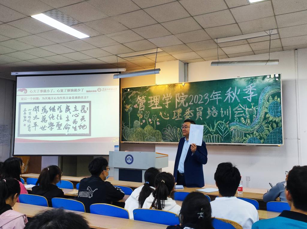为提高学院心理健康教育工作质量,充分发挥心理委员在朋辈心理辅导的优势和作用,积极响应《华体官网网页版第三届“久爱我·Three-Double”9·25大学生心理健康教育活动方案》,管理学院于近期在主楼WN0303教室开展了2023年秋季心理委员培训会。本次培训会由管理学院党委书记何景洋主讲,学院全体心理委员参加了本次培训会。