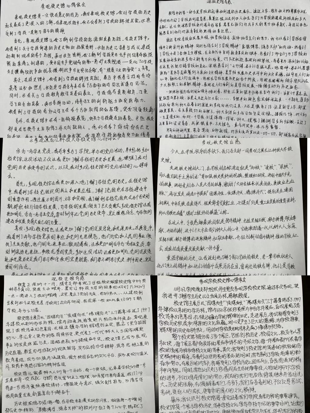 参观结束后,师生党员有感而发,撰写了观后感想,纷纷表示在今后的工作和学习中,将牢记“厚德博学、强吾兴邦”的校训,增强使命意识,强化责任担当,为谱写学校高质量发展新篇章而不懈奋斗。