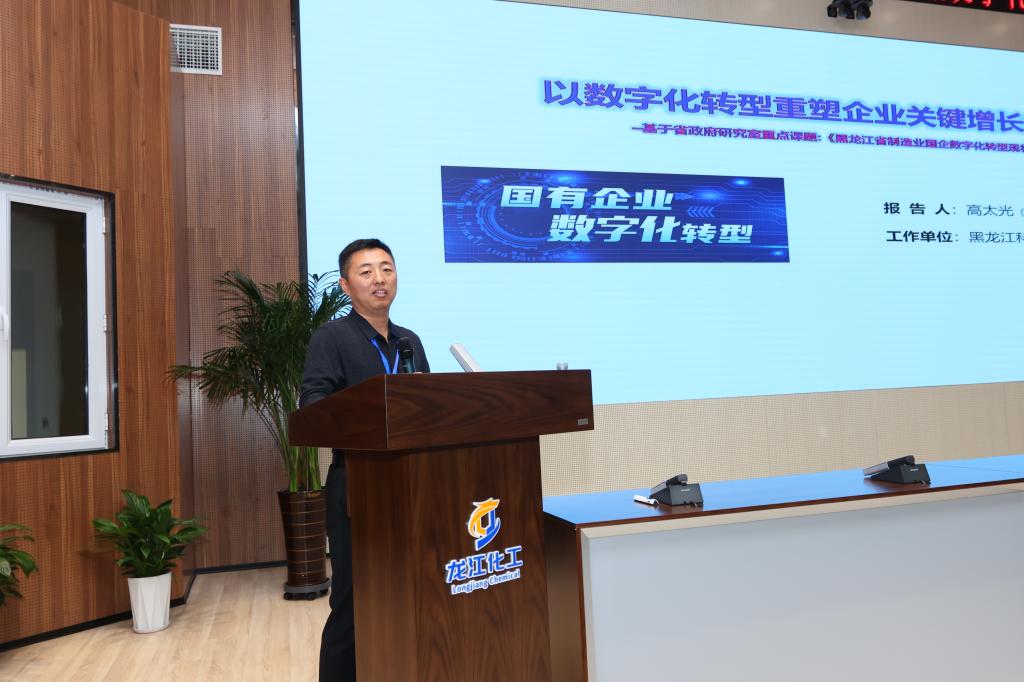 报告中,高太光依托刚刚完成参与完成省政府研究室重点课题《黑龙江省制造业国企数字化转型现状及优化对策研究》,首先对黑龙江省制造业国企数字化转型中存在的问题进行分析,阐释黑龙江省制造业国企数字化转型中的主要期待。然后,对企业数字化转型中涉及的相关概念、理论和方法等问题进行分析和讲解。最后,结合黑龙江省国企数字化转型实际给出几点对策建议,为相关企业高质量开展数字化转型提供决策和实践参考。报告内容得到集团领导和专家好评,并一致表示报告以最简洁的语言和形式、最生动的实例讲解了如何以数字化转型重塑企业关键增长能力,为集团剖析数字化转型中面临的问题和解决对策提供必要参考。此次活动重在践行管理学院积极深挖学科特色优势和服务地方经济发展一贯宗旨,进一步掌握了企业数字化转型经验和面临的实践困难,为下一步聚焦科研问题和完善人才培养奠定基础。