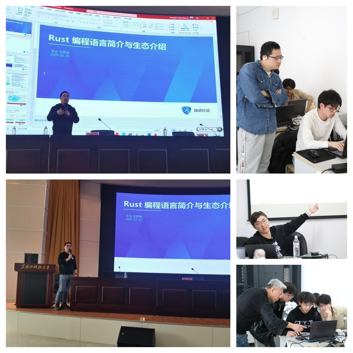 培训期间,马全一教授凭借其深厚的技术功底与丰富的行业经验,深入浅出地讲解了RISC-V架构以及Rust语言在云原生领域的关键应用,为学生们勾勒出该领域的前沿技术蓝图。华为高级工程师王齐林、李征、王鹭星、陈硕分别围绕《Rust特点简介》《Rust全球生态》《Rust在中国的发展》《Rust编程语言语法简介》《Rust—项目实战编程》等专题进行了培训。培训从不同技术维度,通过案例分析、现场演示、学生实操等方式,让学生们真切感受到企业实际开发流程与高校理论教学的联系。学生们学习热情高涨。在答疑环节,学生们就技术细节、职业发展等方面提出诸多问题,专家团队均给予耐心且专业的解答。