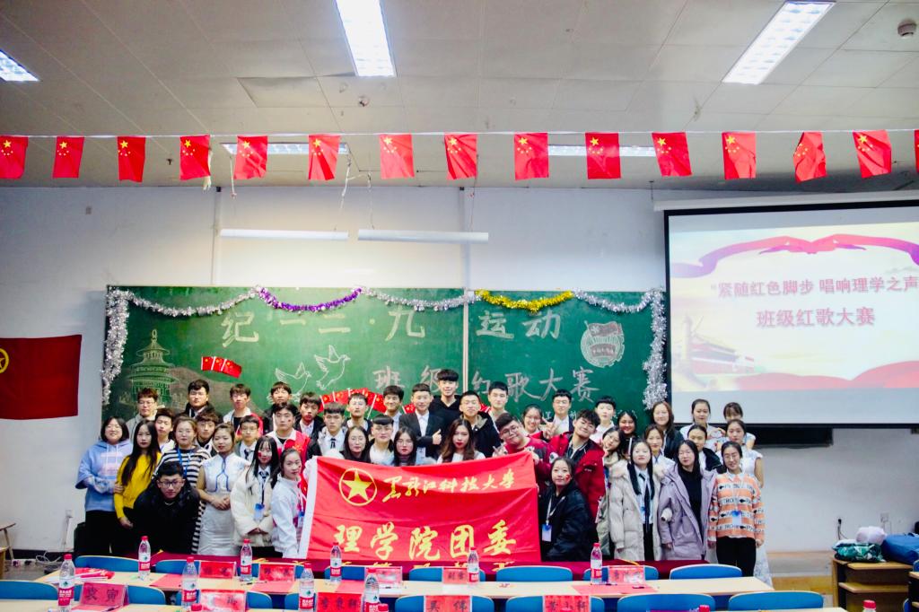 12月3日,理学院在主楼ES0304举办“传承‘一二·九’精神,唱响理学之声“的红歌大赛,引导广大青年学生牢记历史,勿忘国耻。理学院辅导员李威燃、分团委负责人刘雪霏、各学院分团委副书记和学院四大学生组织负责人出席此次红歌会并担任评委。
