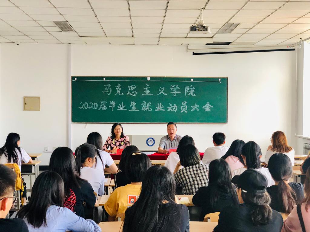 为全面做好学院2020届毕业生就业动员工作,使全体毕业生鼓足斗志,振奋精神,抢前抓早,充满信心,努力实现自己的就业梦想。9月5日下午,马克思主义学院在教学主楼E1011组织召开2020届毕业生就业动员大会,马克思主义学院党总支书记张影出席会议,学院全体2020届51名毕业生参加会议,会议由马克思主义学院学工办主任孙晓辉主持。