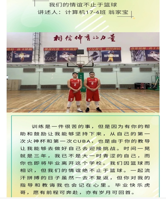 在校生通过照片回忆与学哥学姐四年的珍贵印记,为毕业生送去真挚祝福。无论是在一起余晖下松花江畔的畅谈理想,亦或是午餐过后华体官网网页版校园漫步的悠闲时光,还是校园角落里的不经意间的一次抓拍,每一张照片背后都深藏着学弟学妹对毕业生的感谢、不舍、留恋与深深祝福。