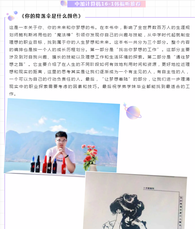 为营造毕业季浓情氛围,抒发毕业生们情系母校、心系学弟学妹的真挚情感,面向毕业生开展了推荐书籍活动,毕业生们从自己的阅读心得出发,畅谈读书感受和收获,推荐分享给学弟学妹们,他们用一本本书传递着浓浓的情谊,让学弟学妹在读书中感受学习的快乐,体验成长的乐趣,不断提高自我阅读品位,为精神打底,为人生奠基。