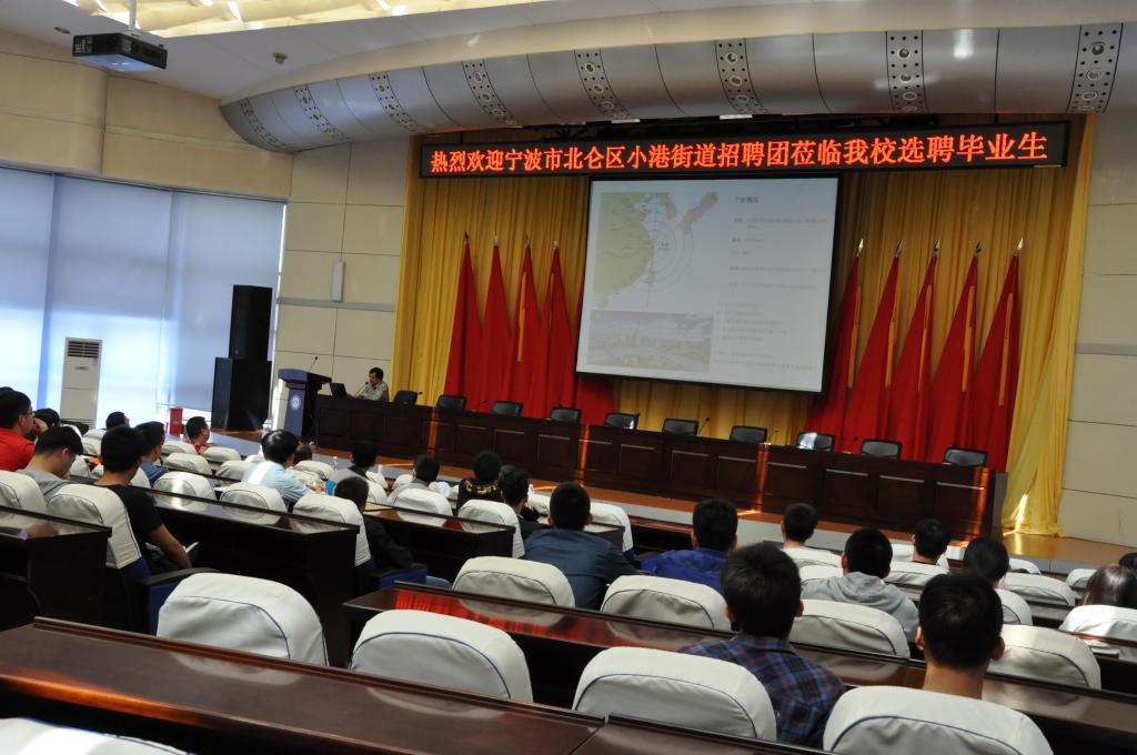 5月25日,华体(中国)与宁波市北仑区小港街道合作,在信息楼报告厅举办校园招聘活动。宁波市北仑区小港街道经济发展科带领域内9家企业参会。