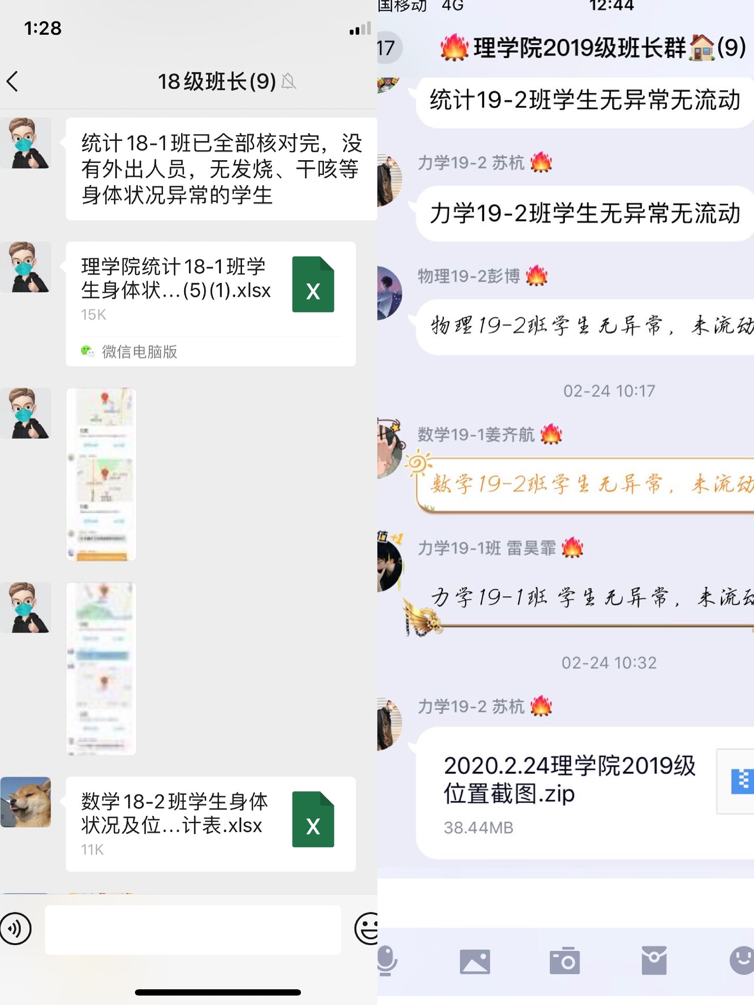 学工办高度重视学生线上学习的准备情况和学习效果,下发了《理学院关于做好学生线上教学期间教育管理工作的通知》,同时积极配合学院整体教学工作安排,做好学生与任课教师之间的桥梁;年级辅导员利用视频会议平台召开线上学动员会,通过问卷调查了解学生课前准备情况,通过微信群及时传达学校开课的相关要求和通知;辅导员不定期加入学生线上课堂,了解学生的学习状态,并及时与专业课老师沟通反馈;鉴于学生线上存在学习诸多不可控因素,积极和学生家长对接请其做好督促,与重点学生的家长进行了电话沟通;学院团委利用学院公众号等平台开展健康宣传教育,制作转发防疫系列推文,宣传志愿服务先进典型,建立专栏转载发布学院教师疫情期间的感悟。