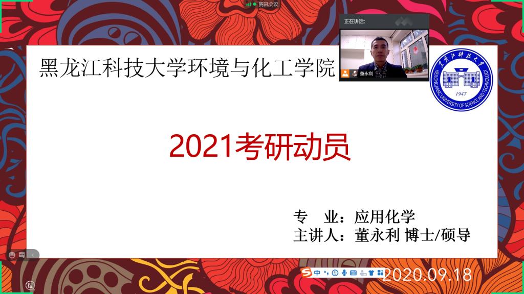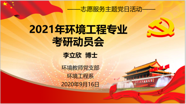 为了进一步激发2021届毕业生和18级学生考研的内在动力,以便更好的了解专业知识、明确考研目标、掌握考研技巧,9月16-18日,环化学院环境工程专业硕士生导师李立欣、化学工程与工艺专业硕士生导师宋薇娜、董永利分别为2021届毕业生和18级学生做了考研动员讲座。