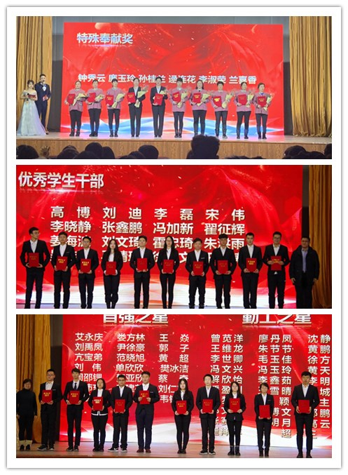 一年来,学生处紧紧围绕“立德树人”根本任务,深入贯彻“不忘初心,牢记使命”主题教育要求,关爱学生,服务学生,挖掘育人要素,完善育人机制,强化实施保障,切实构建了资助育人、服务育人、文化育人体系,为表彰先进树立典型,发挥示范引领作用,会上,对社工18-1班王焱等21名积极参加勤工助学,学习成绩优异,并获得国家励志奖学金的学生授予“自强之星”荣誉称号;对自动化18-3班郭鹏举等30名勤工助学工作表现突出,勇于实践的学生授予“勤工之星”荣誉称号;对建筑学16-1班高博等16名第十六届勤工助学负责人授予“优秀学生干部”荣誉称号;对第1公寓楼长冷淑云等26名社会用工授予“学生公寓服务育人标兵”荣誉称号;对第14公寓逯莲花等6名连续工作十五年以上的社会用工授予“学生公寓特殊奉献奖 ”。化工17-3班张鑫鹏、社工18-1班王焱、第1公寓楼长冷淑云、第14公寓保洁员逯莲花分别作为获奖人员代表作典型发言。
