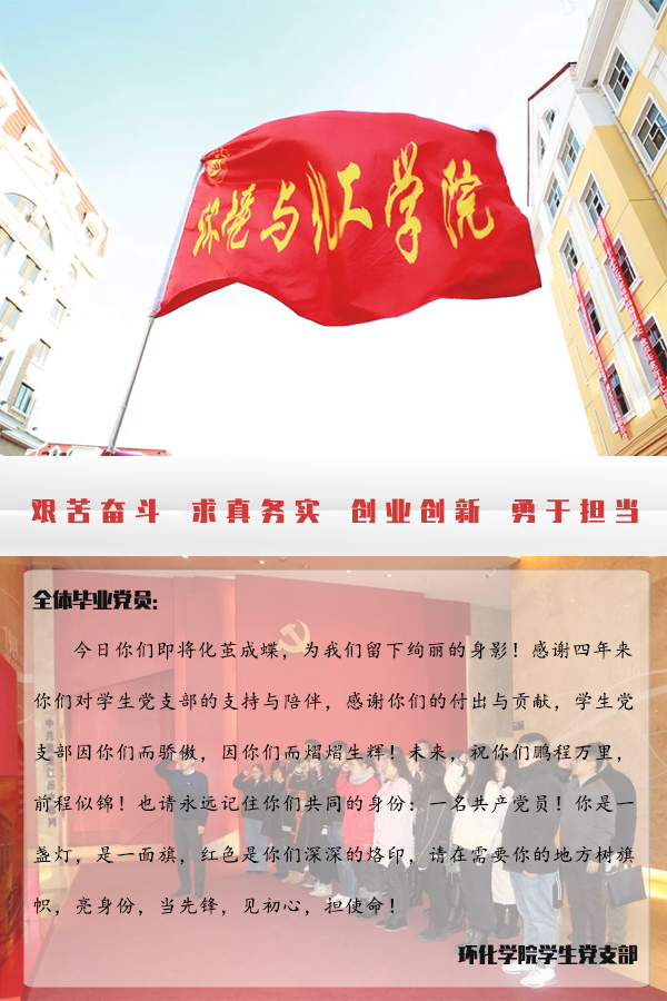 为了教育、引导毕业生党员树形象,担责任,站好学生党员最后一班岗,传承学生党支部优良传统和良好学风,营造优秀党员走在前列做好表率的氛围,激励低年级党员努力向上、奋发有为,环化学院学生党支部为毕业生党员提供一个表达爱的平台,组织开展了“毕业生党员寄语”活动。