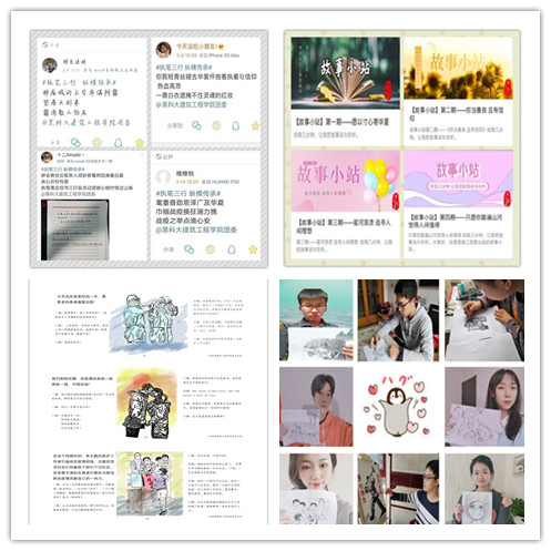 为了取得更好的网络育人效果,我院团委利用网络新媒体策划推出不同种类且主题鲜明的正能量网络文创活动。“执笔三行 纵横传承”原创微博话题活动,尽显青年之思、青年之想、青年之担当;官方微信公众号开设“故事小站”原创栏目,让鲜活的志愿故事以声音、文字、图像“三合一”的形式展现在大家面前;官方微信公众号开设“桃园小馆”线上海报原创栏目,充分发挥专业特色,首次推出“云”海报,打造砼人品牌活动。