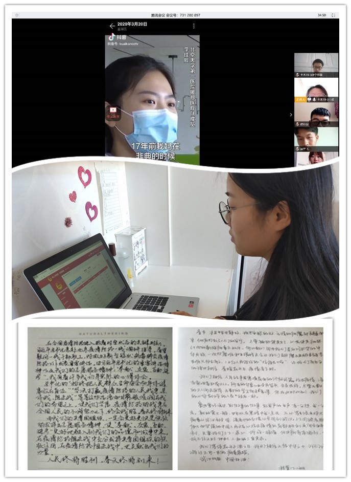 学院团委依托“云”团活,于第二周和第四周组织全院团学青年分别学习了习近平总书记在北京调研指导新型冠状病毒肺炎疫情防控工作的重要讲话、给在首钢医院实习的西藏大学医学院学生回信以及《习近平总书记给北京大学援鄂医疗队全体“90后”党员的回信》相关精神。统一部署、分别开展、线上热议、线下有感,坚决做到入脑入心,充分发扬“党有号召,团有行动”的优良传统。
