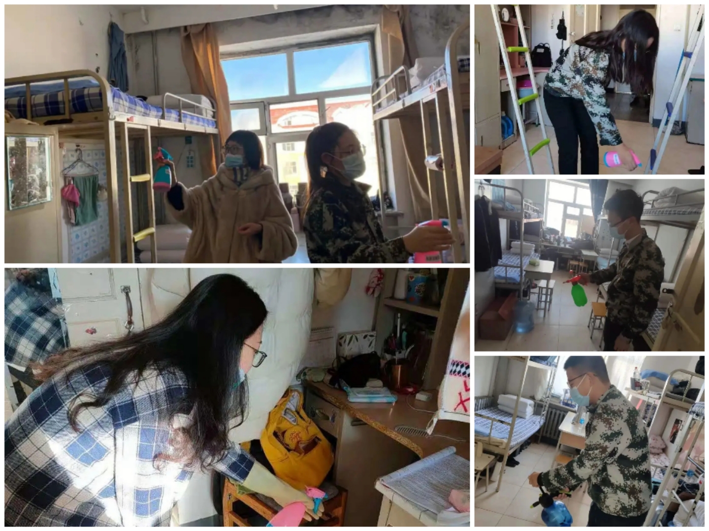 活动期间,学生支部每一位党员都认真负责,无论是用消毒液在寝室里消毒,还是清理寝室的地面门窗,学生党员们认责负责,勤劳的身影出现在寝室的每个角落。大家打开寝室门窗,保证通风换气时间大于20分钟。经过2个多小时的清理和消毒,马克思主义学院各个学生寝室里充满清新的气息,带来焕然一新的感觉。