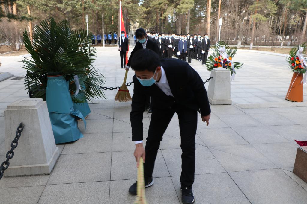 在前往途中,学院团委副书记翟晓靖向大家介绍了烈士陵园详细情况及朱瑞将军生平。祭扫仪式上,学生代表清扫烈士墓碑,敬献花篮;全体师生向烈士献自做“百花”,集体默哀,重温入党、入团誓词,共唱国歌;学院团委副书记赵岩代表全体学生以《缅怀革命先烈 争做有为青年》为题进行了发言,倡议青年学子要牢记历史,继承爱国传统;要终身学习,提升自身素质;要勤于实践,勇担历史使命。