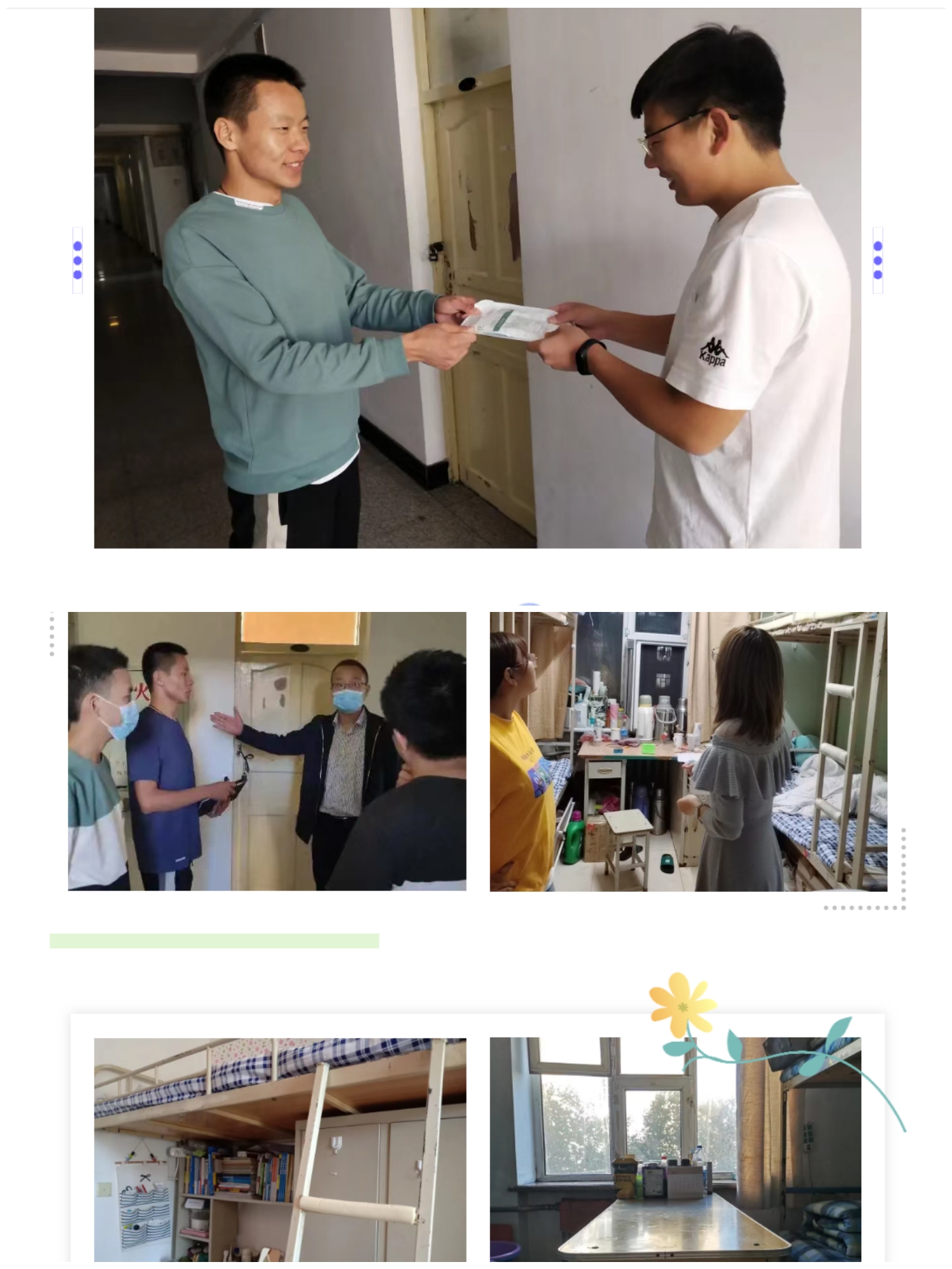9月9日-9月10日,在秋季学期学生返校之际,为深入开展公寓疫情防控知识宣讲与普及,教育引导学生遵守疫情防控下公寓住宿要求。学院组织学生志愿者深入到学生寝室中对返校学生进行公寓疫情防控知识宣讲,并下发了公寓疫情防控告知单和学校为学生免费发放的口罩。同学们积极参与到“公寓防疫有我在”主题征文活动中,争做公寓疫情防控的标兵。