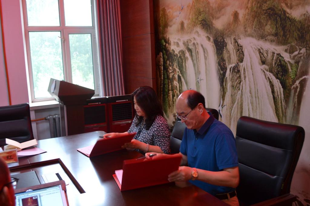 6月28日,管理学院与新道科技股份有限公司在管理学院会议室举行共建“云财务管理会计“实验班签约仪式。管理学院院长谭旭红、副院长郭红、会计系主任薛艳及会计系骨干教师,新道方的代表有新道科技股份有限公司副总裁宋健、黑龙江省区总经理张海冰、黑龙江省区销售总监王智轩参加本次签约仪式,会议由“云财务管理会计“实验班负责人王丽敏主持。