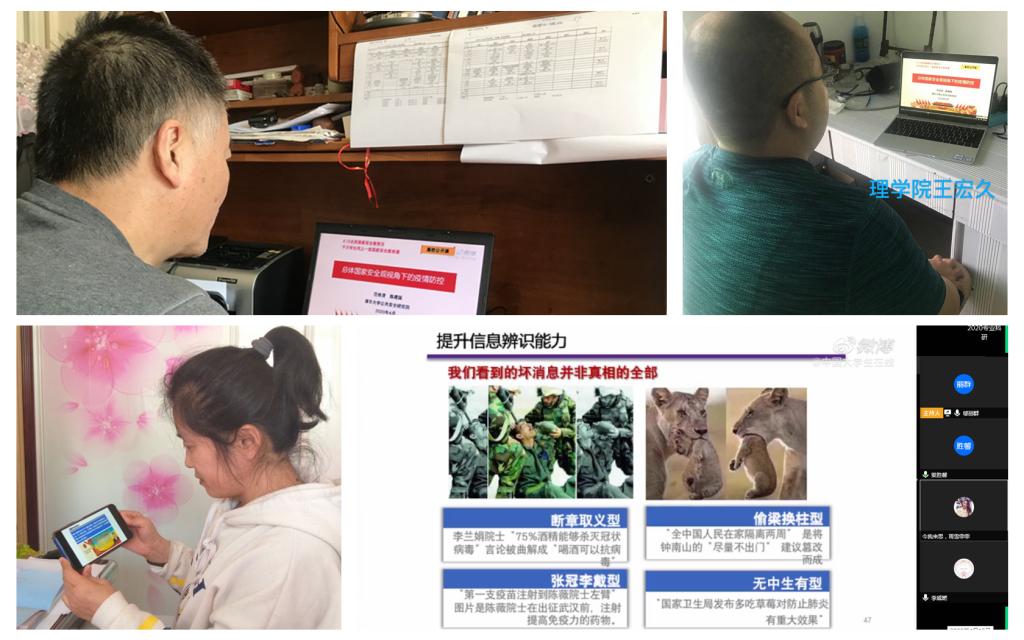 以上率下,充分发挥党员干部的带头作用。按照上级要求,学院班子成员第一时间研究部署学院教育安排,并制定了《理学院关于开展好全民国家安全教育日学习宣传活动的通知》,在学院中层干部群和全院教师群分别进行了安排和部署,层层抓落实,确保教育的广度与深度。班子成员通过龙江干部教育平台在线完成国家安全教育知识网上答题,全体教师通过各种网络平台收看“同上一堂国家安全教育课”,在全院学生中开展“召开一次线上主题班会”、“参加一次线上答题”、“制作一份手抄报”和“同上一堂国家安全教育课”的“四个一”主题教育。