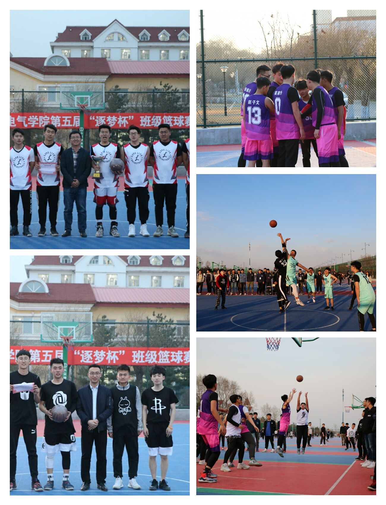 4月10日至16日,电气学院在篮球场地举办了第五届“逐梦杯”班级篮球赛,“逐梦杯”是电气学院规模最大,关注度最高的传统品牌体育运动赛事,本次赛事在2017级25个班级中开展,以邻班组队的方式共计12支队伍144名队员参赛,比赛以FIBA官方篮球规则为准,裁判员为学院篮球队2015、2016级队员,比赛累计吸引观众3000余人次到场加油助威。因篮球比赛具有一定对抗性,赛前,学院对全体参赛队伍及队员进行技术指导,对比赛安全及比赛纪律提出了明确要求,同时为参赛队员集体购买了意外伤害险。各队伍秉承“友谊第一 比赛第二”的原则圆满完成全部15场比赛,电气17-1、2班联队获得了比赛冠军,自动化17-3、4联队、电气17-8、9班联队分别获得二、三名。