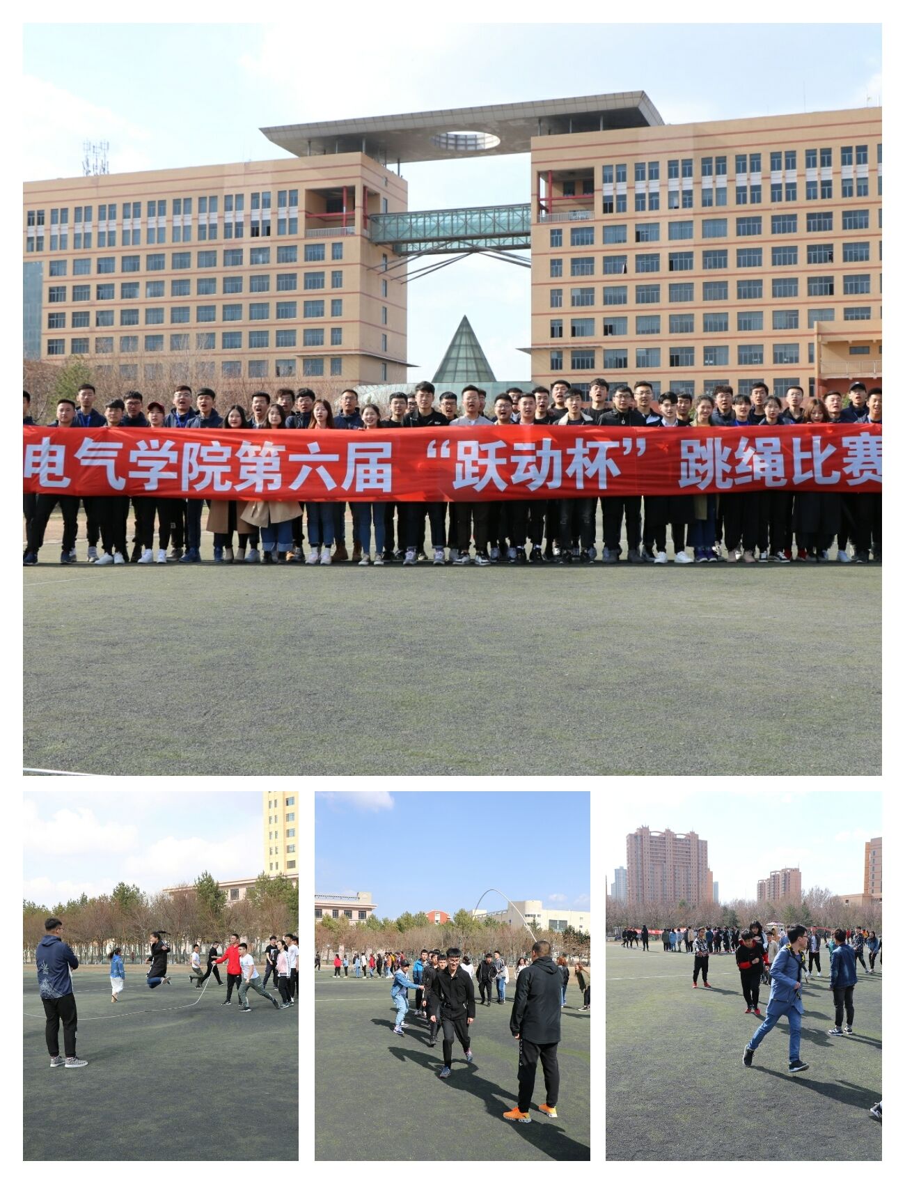 4月13日下午,电气学院在小足球场举办了第六届“跃动杯”班级跳绳比赛,“跃动杯”是电气学院持续时间最久,参与人数最多的传统品牌体育运动赛事,本次比赛在前期充分动员下,学院2018级26个班770余名学生参加了比赛,比赛以班级为单位开展,在规定时间内班级跳大绳次数最多者获胜。最终,电气18-7班、测控18-3班、自动化18-7班分别获得了比赛前三名。