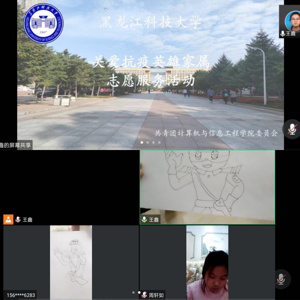 奉献“奉献者”有温度。为感谢疫情防控期间奋战在一线的医护人员,学院与绥滨县人民医院对接,联系抗疫一线医护人员,于3月26日晚利用学生的课余时间,借助腾讯会议平台,为其子女们提供线上视频辅导,与小朋友分享歌曲和绘画技巧,小朋友们学的开心,小老师们教的用心,大家用青年公益力量呵护奉献者子女的学业和生活,让爱在奉献中升温。