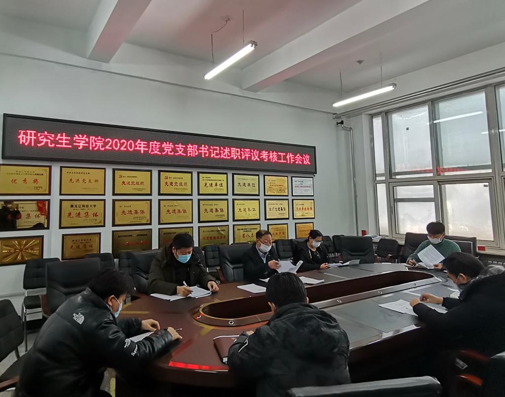 研究生学院于12月30日召开2020年度党支部书记党建工作述职评议考核工作会议,会议由学院党委书记王维杰主持,学院党委委员雷金屹、侯树成及全体党支部书记参加了会议。