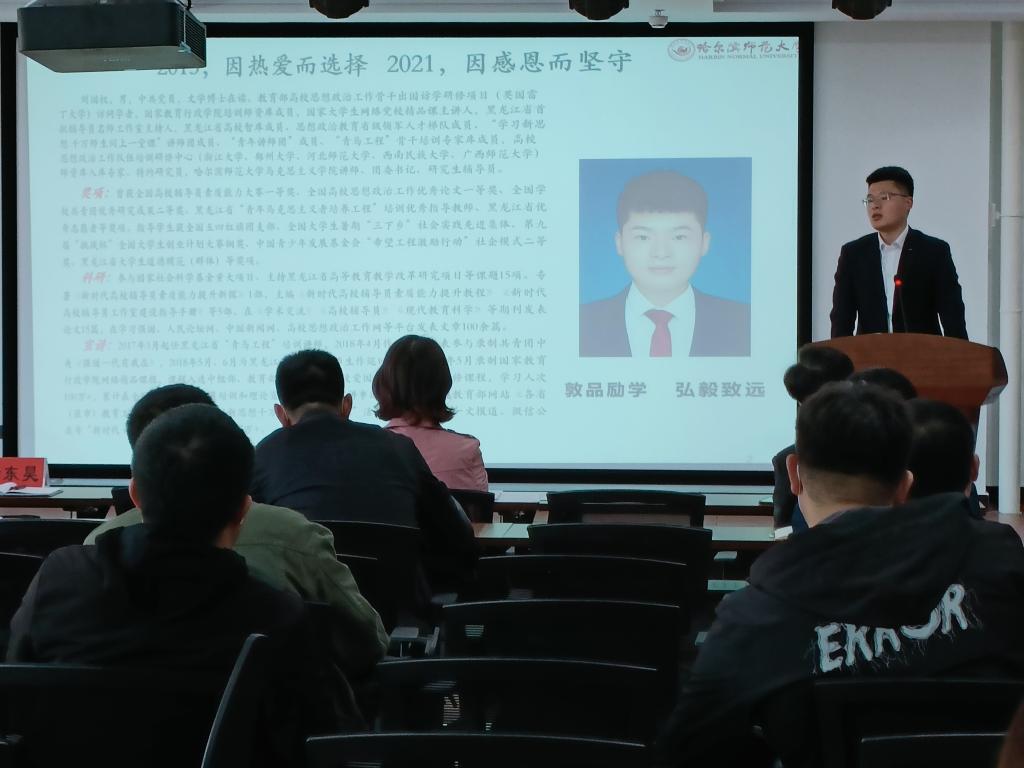 4月20日,华体(中国)专门邀请第七届全国高校辅导员素质能力大赛一等奖获得者、哈尔滨师范大学马克思主义学院辅导员刘国权,来华体(中国)开展“新时代高校辅导员素质能力新探”的专题培训,各学院主管学生工作副书记、全体辅导员参加了此次讲座。