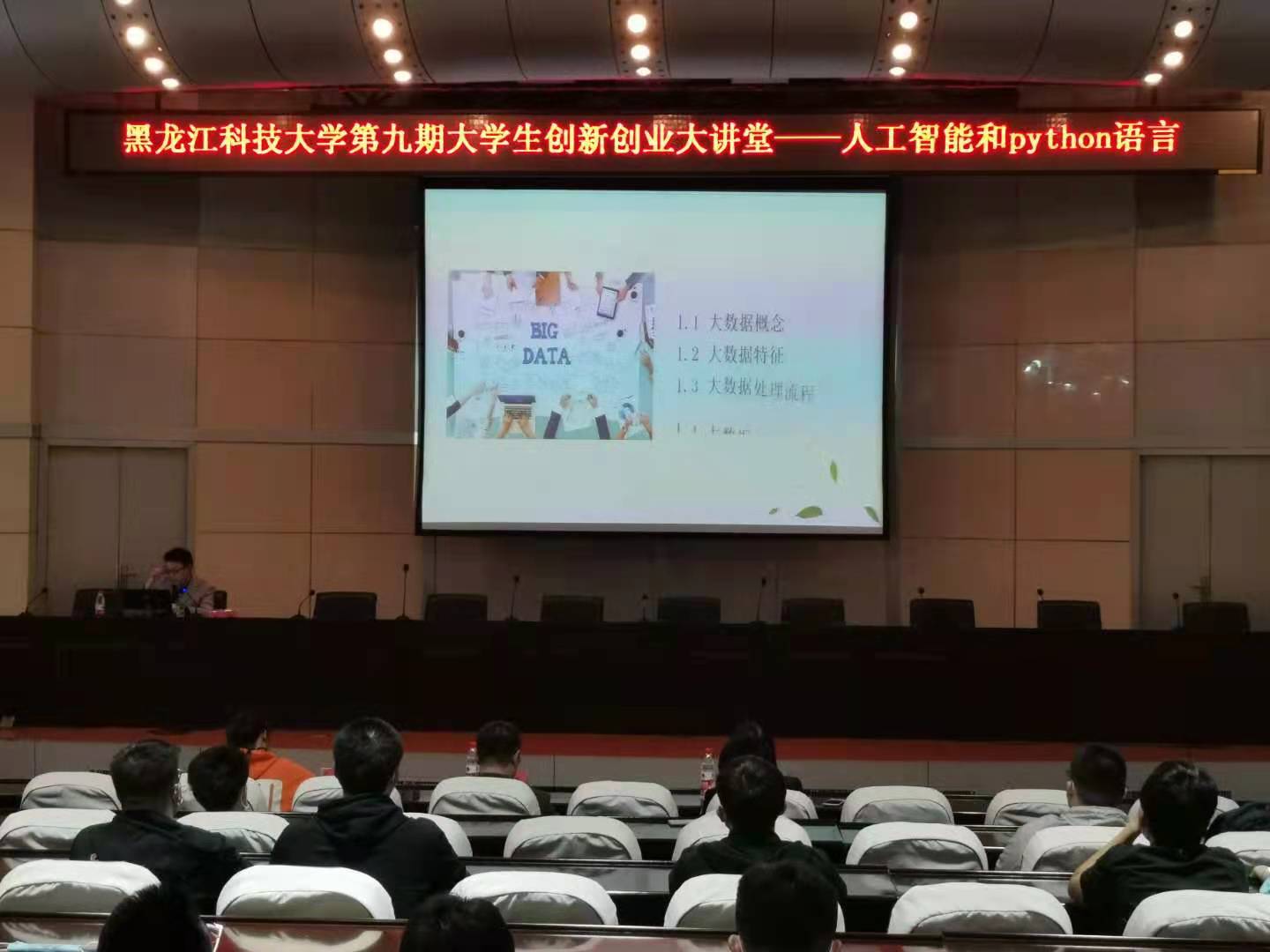 4月26日,由校团委主办、校大学生科技协会承办的华体官网网页版第九期大学生创新创业大讲堂——人工智能和python语言在信息楼报告厅举行。讲座邀请到了黑龙江大学信息管理学院副教授张涛主讲。校团委副书记张雪峰、AI人工智能协会指导教师许珊珊、校团委冯孟诗以及100余名青年学生参加了此次活动。