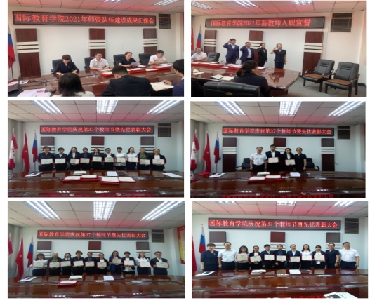 队伍建设总结与思考。院长《以高素质教师队伍建设,推动国教内涵式高质量发展》的报告,对2021年国际教育学院师资队伍建设进行了总结。分析了我院师资队伍现状与短板,提出了提升教师素养和创新能力、完善教师管理制度、建立奖励激励机制、培养支持教师成长、开展引才、稳才、固才的工作措施。针对学校教代会和暑期干部论坛会议精神,提出把握新时代教育改革发展新方位、新征程、新使命,凝聚发展共识,齐心协力打造高素质、专业化、创新型、有情怀师德师风好、业务水平好、梯队建设好,教学能力强、实践能力强、创新能力强、服务社会能力强的“三好四强”的教师队伍。