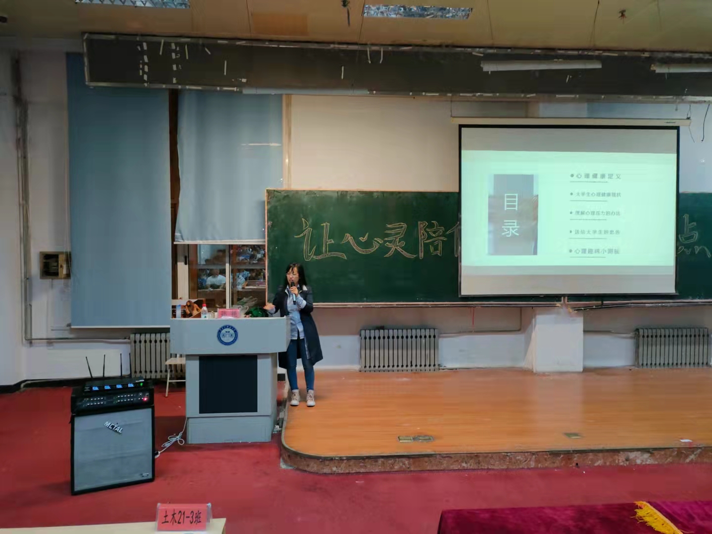 关注学生心理健康,为学生成长保驾护航。为确保同学们顺利的度过心理适应期,9月20日,孙艳老师组织召开“让心灵陪伴心灵,用青春点燃青春”主题讲座,讲授心理卫生知识、心理疏导方法。同时,以团体辅导为契机,积极营造良好的团体关系与融洽的团体氛围,使学生对集体产生归属感与安全感。