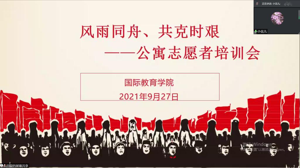 9月27日,中午12:00,学院组织召开“风雨同舟 共克时艰”公寓志愿者培训会,学院党委副书记出席,学院全体辅导员及公寓志愿者参加会议,会议由学生工作办公室负责人田晨主持。会上党委副书记徐海英结合松北区当前多处街道、社区开始封闭隔离的现状,超前谋划,科学部署,组织成立公寓志愿服务队伍,并针对志愿者开展培训,以未雨绸缪的姿态,周密布置,奋力迎战新冠疫情带来的新挑战。会上海英书记高度认可志愿者们的主动参与、无私奉献的精神,对应急管理期间,宿舍志愿服务工作进行科学的制定和详细部署。最后,海英书记强调到一是志愿者在疫情防控工作中一定要充分做好个人的防疫准备,做好防护措施。二是要做好充足的心理准备,敢于吃苦、乐于奉献,明确自身的任务与责任,站好每一班岗。三是在疫情防控工作中要保持乐观向上的工作态度,以此带动身边同学以良好的情绪科学的看待疫情防控。