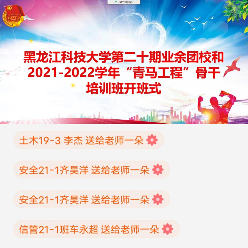 在庆祝中国共产党成立100周年之际,为深入学习习近平新时代中国特色社会主义思想和习近平总书记关于青年工作的重要讲话精神,紧跟党的步伐,增强进取意识,深入推进党史学习教育走深走实,在华体(中国)广大团员青年中培养一批政治强、素质高的团学干部,校团委于10月11日举办华体官网网页版第二十期业余团校和2021-2022学年“青马工程”骨干培训班开班式。校团委全体工作人员、第二十期业余团校学员和2021-2022学年“青马工程”骨干培训班全体学员共计300余人依托线上“腾讯课堂”参加了开班式,开班式由校团委副书记张雪峰主持。