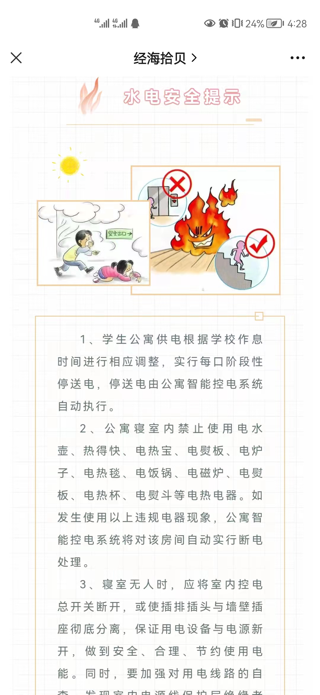 学生公寓是学生学习、生活的重要场所,是疫情防控和消防安全的重点领域和关键环节,为进一步防范安全事件发生,保障学生生命和财产安全,按照学校关于落实《华体官网网页版学生公寓管理规定》工作职责开展自检自查的通知要求,学院于10月25日召开学生工作专项会议,安排落实具体工作措施,10月26日上午9:00学院联合保卫处防火科、学生处舍务科开展了公寓安全隐患自查工作。