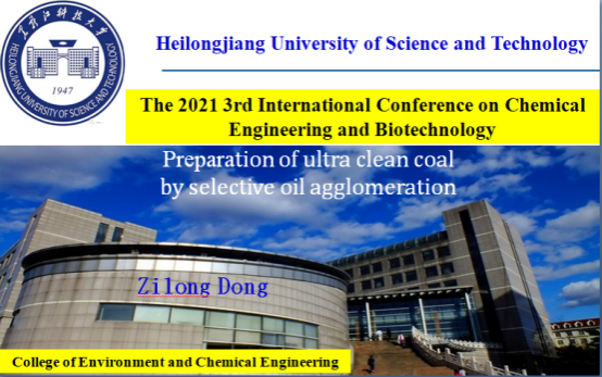 第三届化学工程与生物技术国际学术会议(ICCEB 2021)于2021年11月13日—14日在中国上海召开,本届会议采取线上和线下相结合的方式举办,会议报告语言为英语。应大会主办方邀请,华体(中国)环化学院教师董子龙博士在大会上做了题为“Preparation of ultra clean coal by selective oil agglomeration”的报告,并与国内外专家学者进行现场交流,建立了良好的国际和国内学术关系,该会议报告受到参会专家学者的广泛关注。
