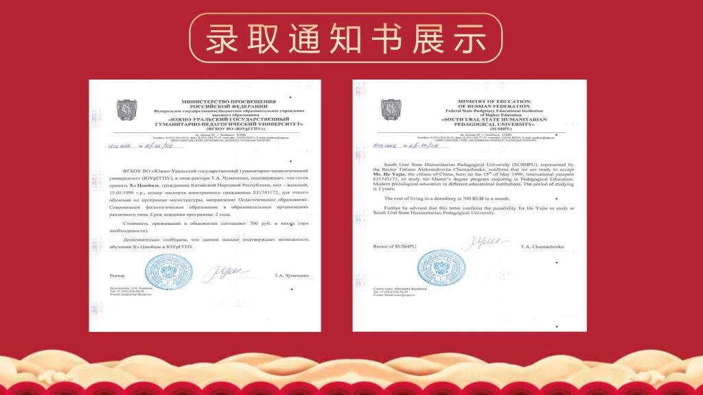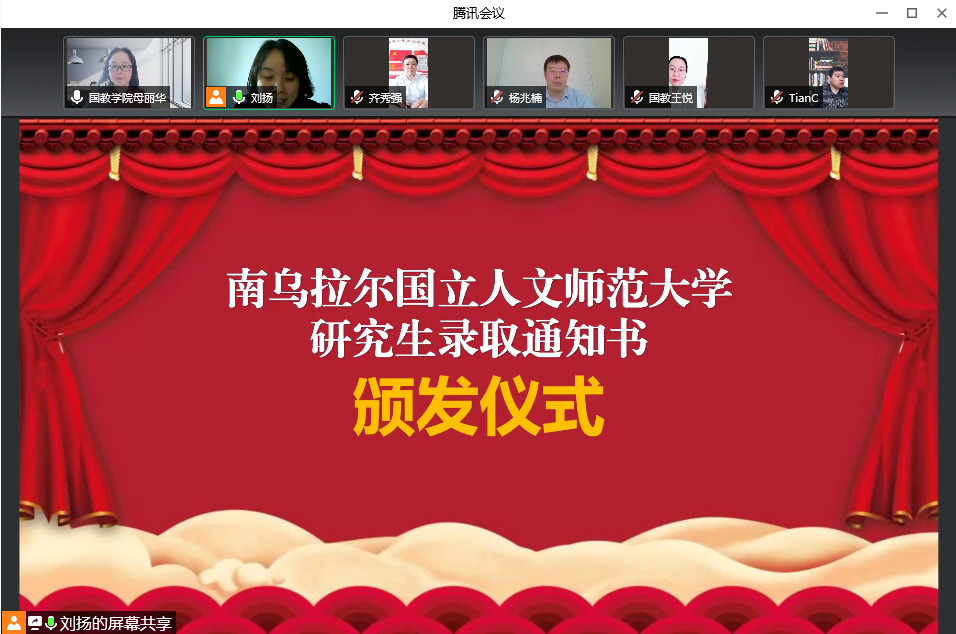 展特色,拓新渠。为了更好地发挥国际合作特色,国际教育学院克服疫情不利因素,多措并举、创新模式,经过不懈努力,与俄罗斯南乌拉尔国立人文师范大学建立了友好合作关系,华体(中国)俄语专业16名学生获得了该校硕士研究生录取通知书,为俄语专业学生继续深造拓展了空间。杨院长代表学院领导宣读了获得南乌拉尔国立人文师范大学研究生录取资格名单并颁发了录取通知书。齐书记代表学院党委向学生们表示祝贺,并感谢俄语系全体教师的辛勤付出!
