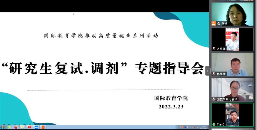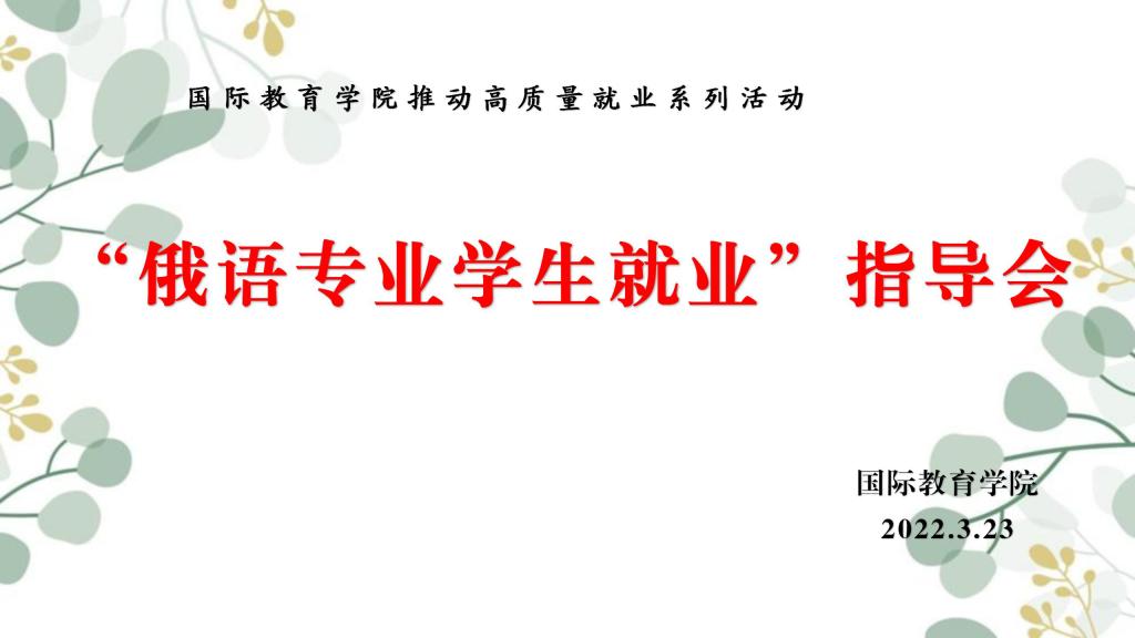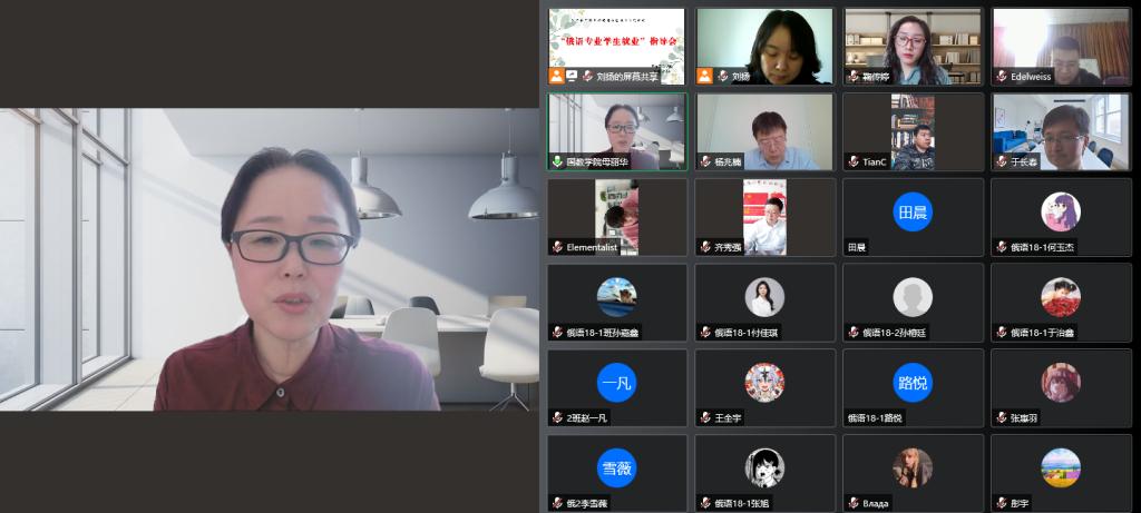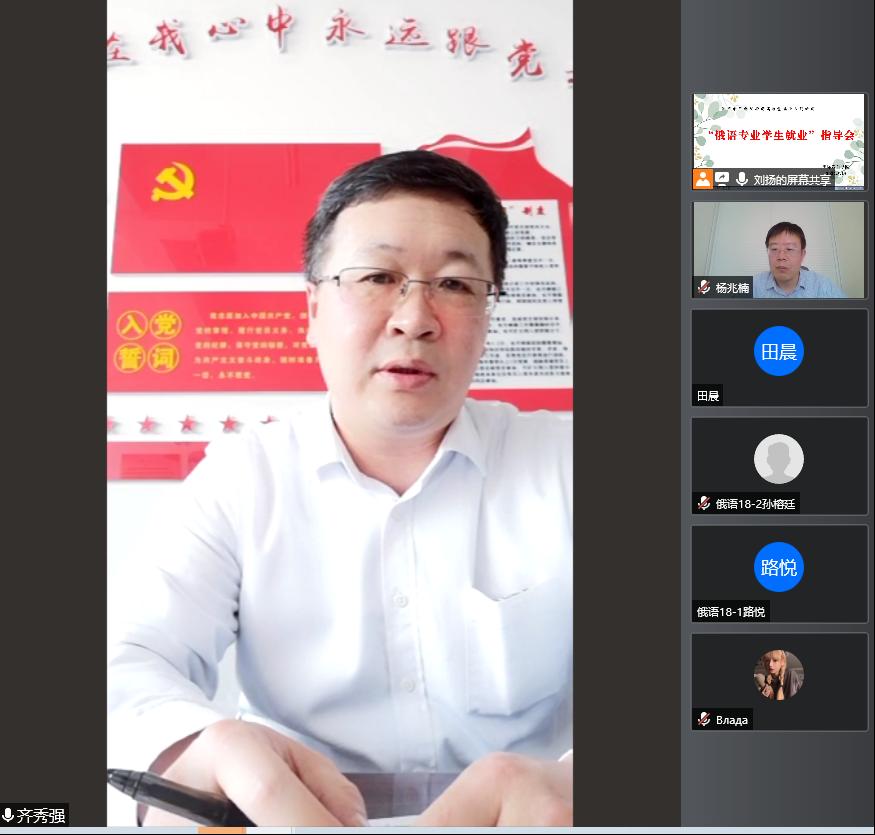 国际教育学院于3月23日通过腾讯会议召开了俄语专业高质量就业推进会。会议由俄语系主任刘扬主持,学院党委书记齐秀强、院长母丽华、副院长杨兆楠、学生工作负责人田晨、俄语系全体教师和全体毕业生参加了本次会议。