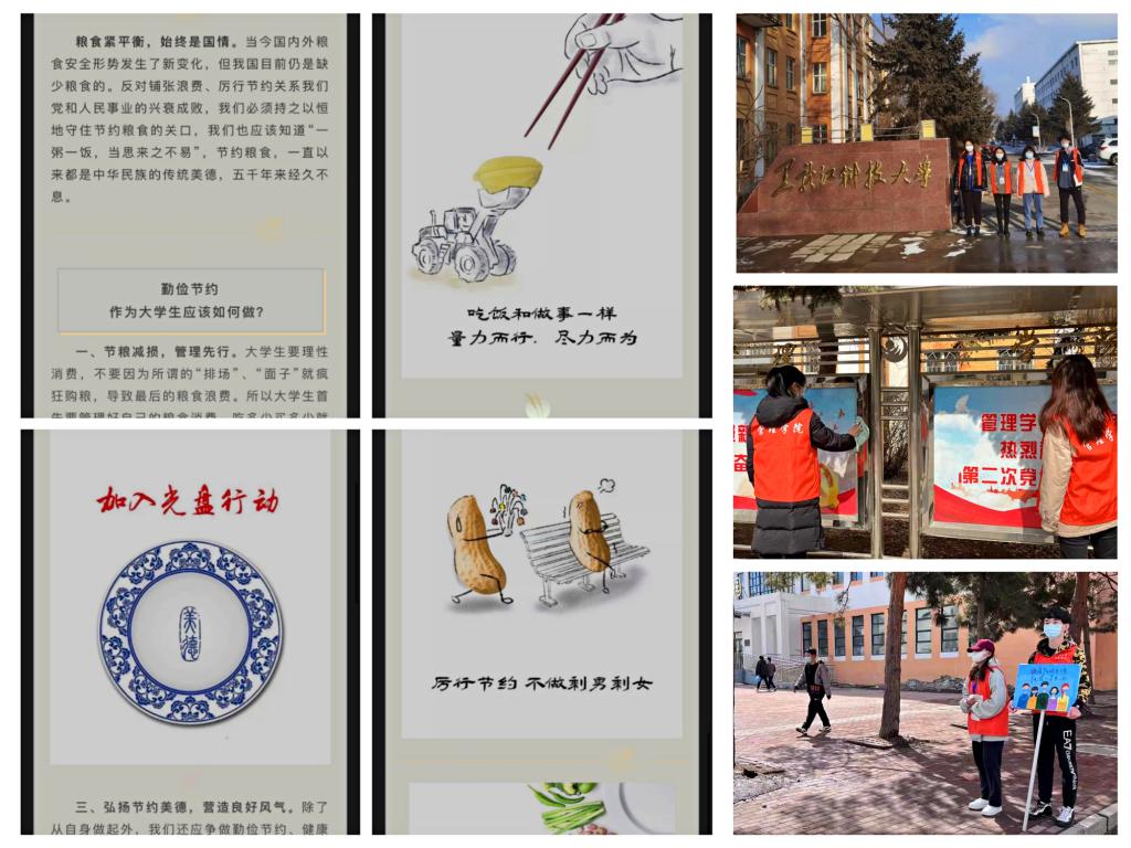 管理学院聚力“文明校园”,助推劳动教育走深走实,开展杜绝粮食浪费宣传、厉行节约“光盘行动”、文明校园志愿服务等活动,教育引导学院学子为共建绿色校园贡献力量。志愿者们奔赴在校园志愿服务的路上,多次围绕学生宿舍、教学楼、实验楼等场所组织开展校园集体清洁劳动,按班按时对学校开展疫情校园巡逻工作,用实践行动爱护和建设美丽校园。