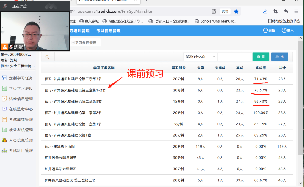 强化教师主体责任,保障教学质量。遵循线上教学规律,以知识点为主线、结合教学互动环节实施线上教学,注重课前温故、课上交流和课后答疑,精心设计学生课前预习、课上练习和课后作业任务,引导和发挥学生的自主学习动力。落实过程管理。坚持教学信息日汇报和周分析制度,及时汇总当前线上教学存在的问题,做到每周有落实有改进。推进教师线上教学能力建设。安全工程系主任沈斌以主讲课程《矿井通风基础理论》为例,开展了线上公开课,课后与教师们一起交流研讨了线上教学平台在课程教学的课前、课中、课后应用方式和如何从数据上分析学生学习参与度与成效,做到课内的持续改进。校教学创新大赛二等奖获得者张强老师以“论抓住学生注意力的重要性”为主题进行了线上教学分享,为提升线上课堂教学成效提供了有益参考。