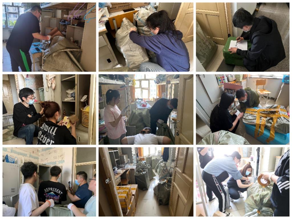 ——善作善成展风采,闭环管理启新程。在所有师生党员志愿者的共同努力下,于5月24日圆满完成了237个寝室919名毕业生的邮寄物品打包工作。师生党员志愿者将毕业生邮寄物品按照编织袋、中号纸箱和大号纸箱等规格逐一打包,并在显著位置标注好班级、姓名、联系方式等有效信息,做到了邮寄物品分类有序、打包有序、摆放有序,为快递公司准确填写邮寄地址、寄件称重、邮费确认、有效配送等工作奠定了坚实基础,很好地形成了从视频连线到分类整理、从按需打包到精准投递等全过程的闭环管理。同时,在整理好邮寄物品后,他们不辞辛苦,不言劳累,再次投入到寝室环境清洁工作,对所有毕业生升寝室逐一进行清扫、消毒,并将垃圾分类投放至指定位置,志愿者们彰显了善始善终的务实精神。